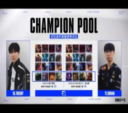 体育资讯10月14日报道宣称 今日S15世界赛入围赛iG对阵T1的比赛即将开始,在赛前官方放出了双方上单英雄池对比,TheShy与Doran第三赛段均使用了十六名英雄,其中只有四名英雄不相同。
