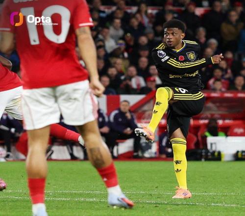比赛第81分钟,阿马德-迪亚洛打入一球,帮助曼联扳平比分。